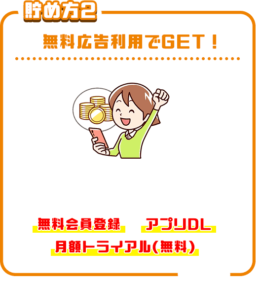 - ギフトゲッターに掲載している広告を利用すると、コインがもらえます。無料で利用できる様々な広告がありますので、是非ご利用ください。
