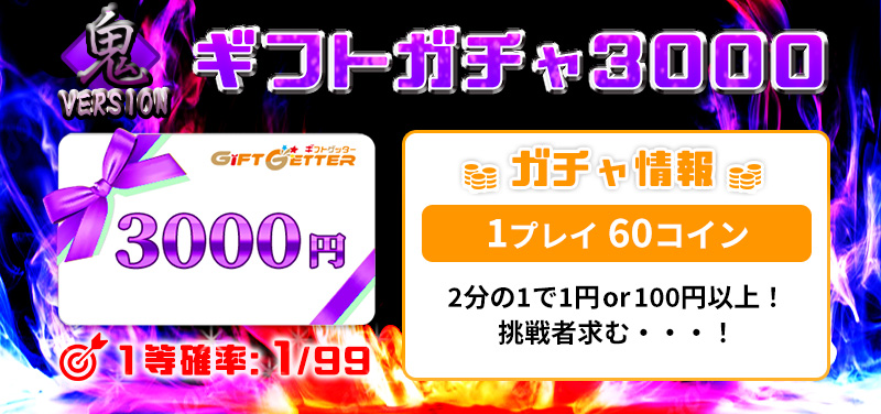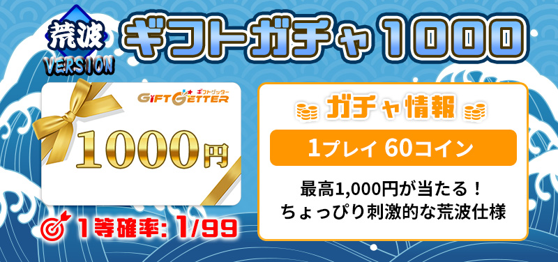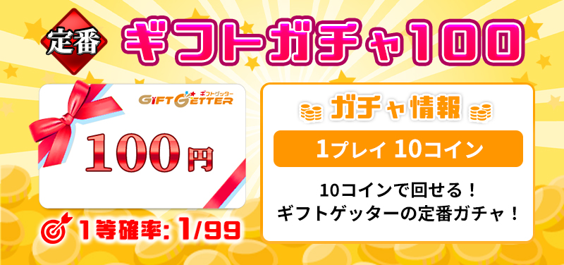 - ギフトが当たるくじ引きです。1等〜99等までの数字が99分の1で当選します。等数に応じた金額のギフトが当たります。